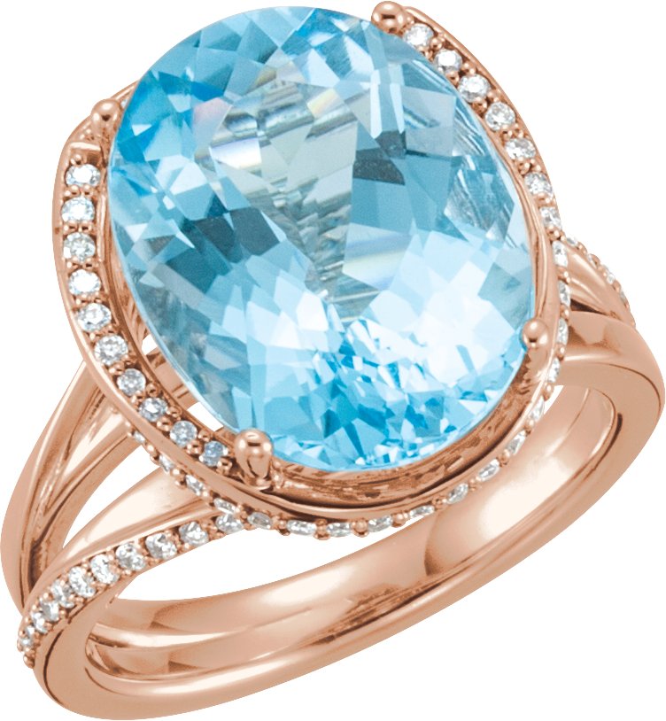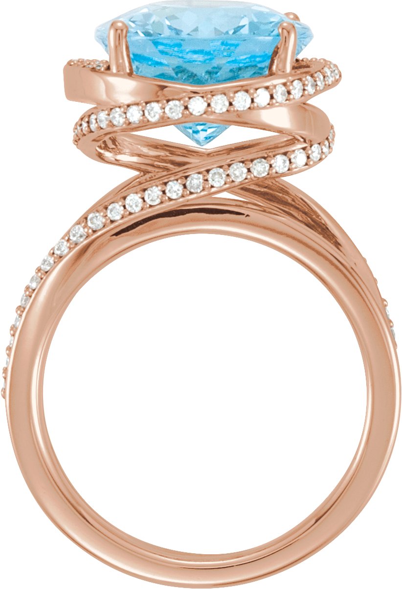 14K Rose Swiss Blue Topaz and .50 CTW Diamond Spiral Ring
