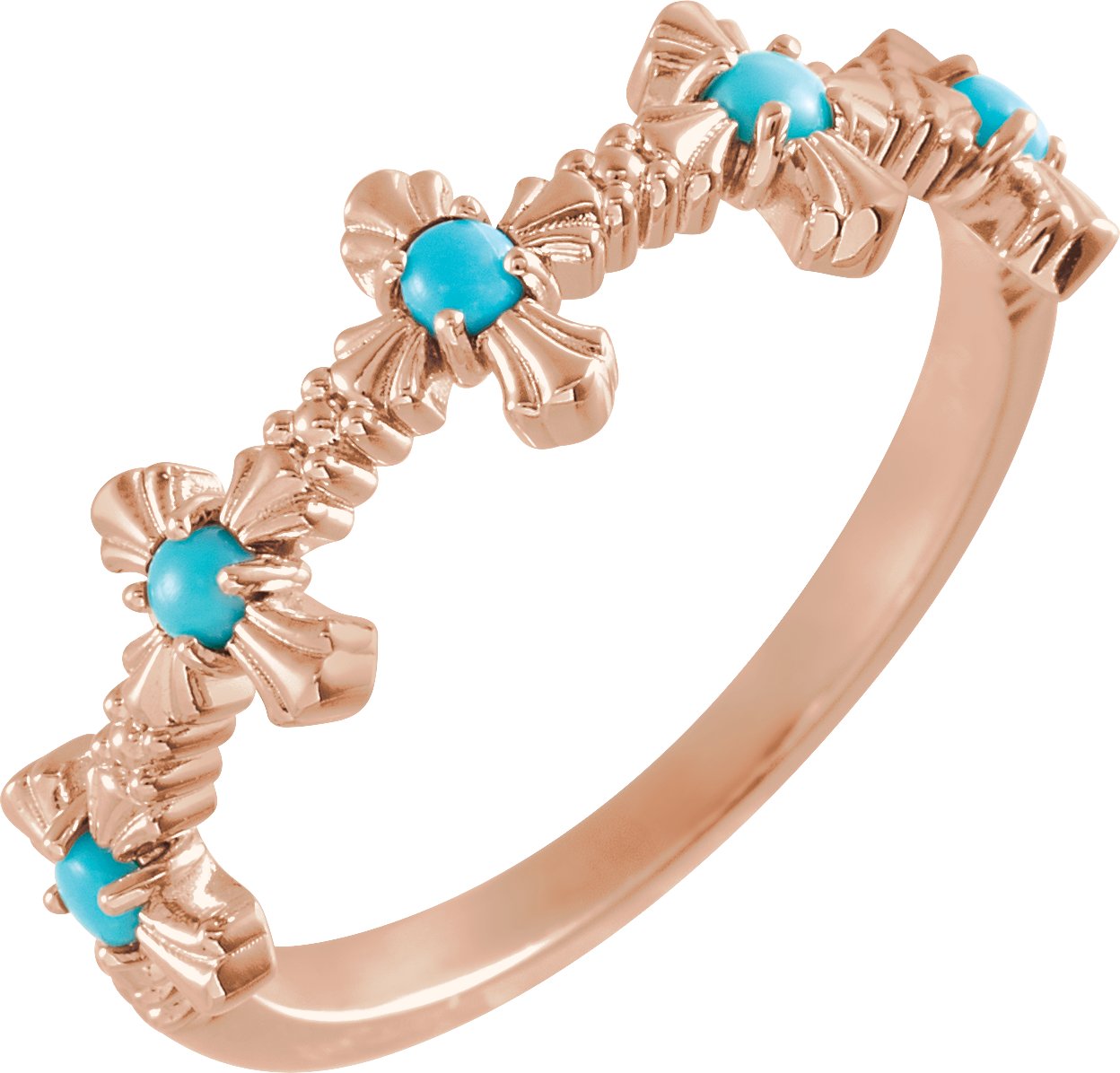 14K Rose Turquoise Cross Ring