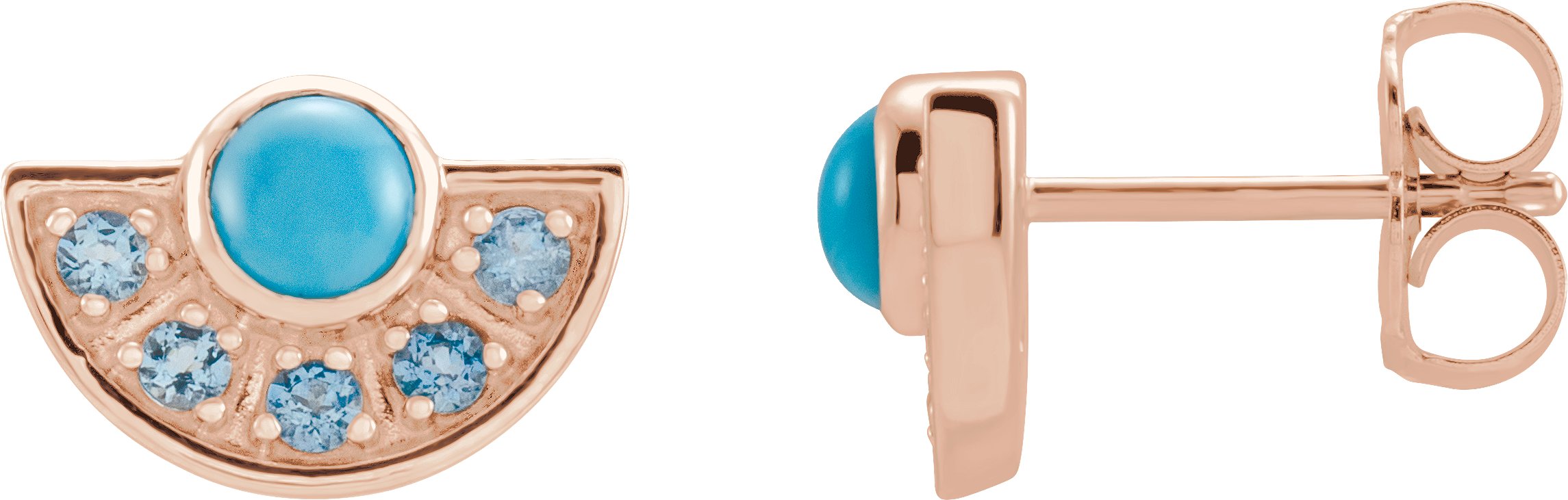 14K Rose Turquoise & Aquamarine Fan Earrings