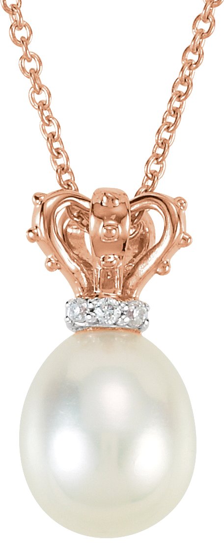 14K Rose & White Freshwater Cultured Pearl & .015 CTW Diamond Crown 18 inch Necklace
