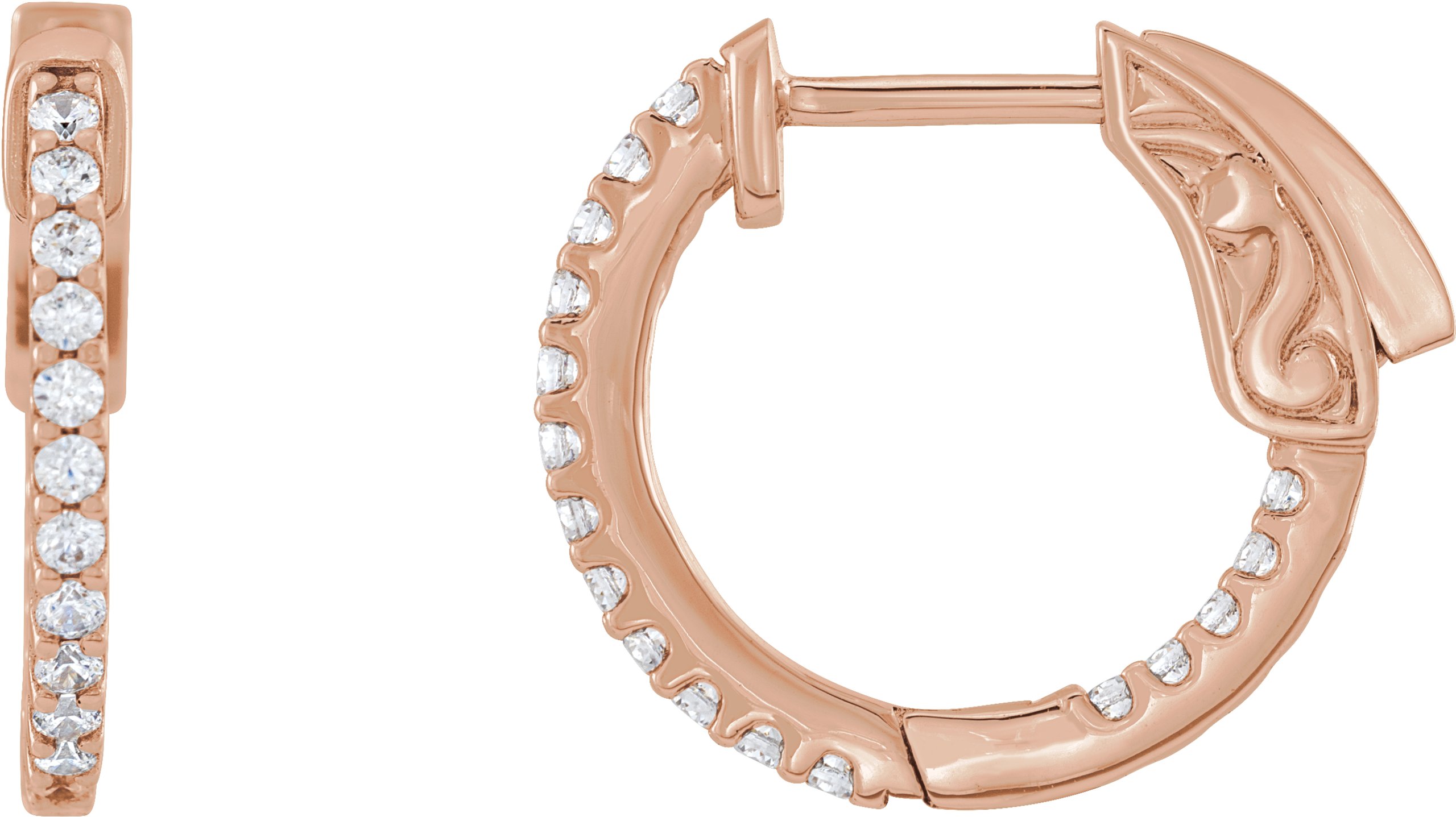 14K Rosee 1/3 CTW Lab-Grown Diamond Inside-Outside 15.5 mm Hinged Hoop Earrings