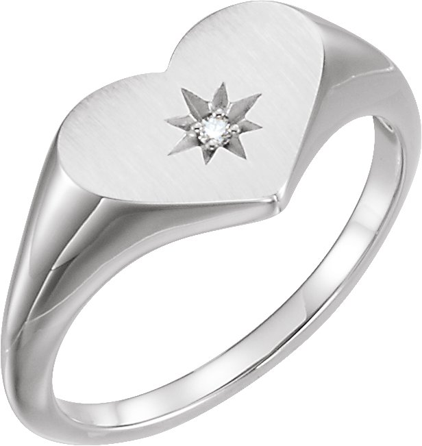 Sterling Silver .01 CT Diamond 11.9 mm Heart Starburst Ring