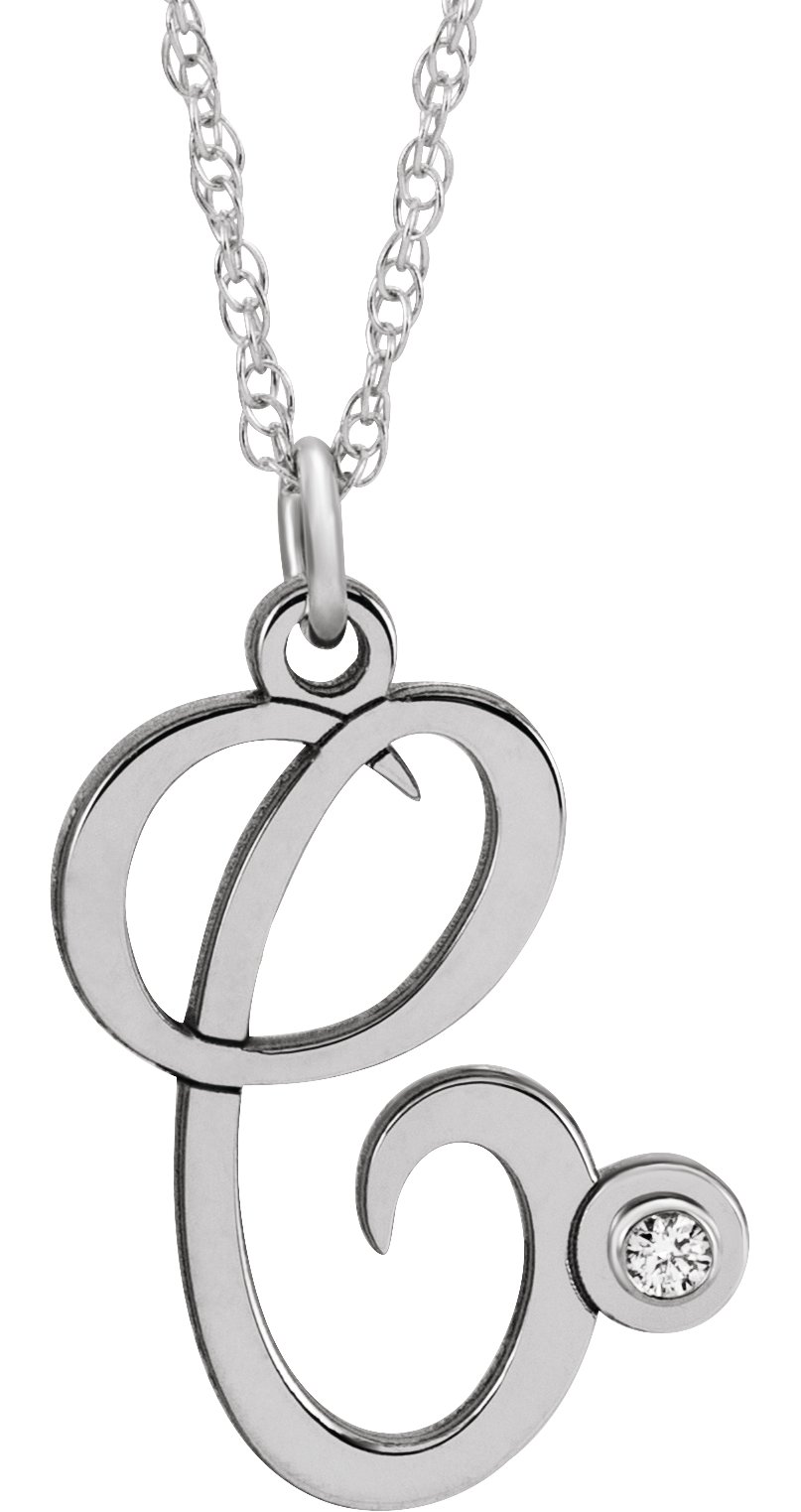 Description: .02 Ct Diamond Accented Script Initial Necklace