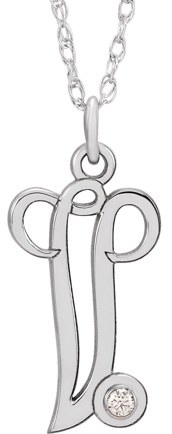 Description: .02 Ct Diamond Accented Script Initial Necklace