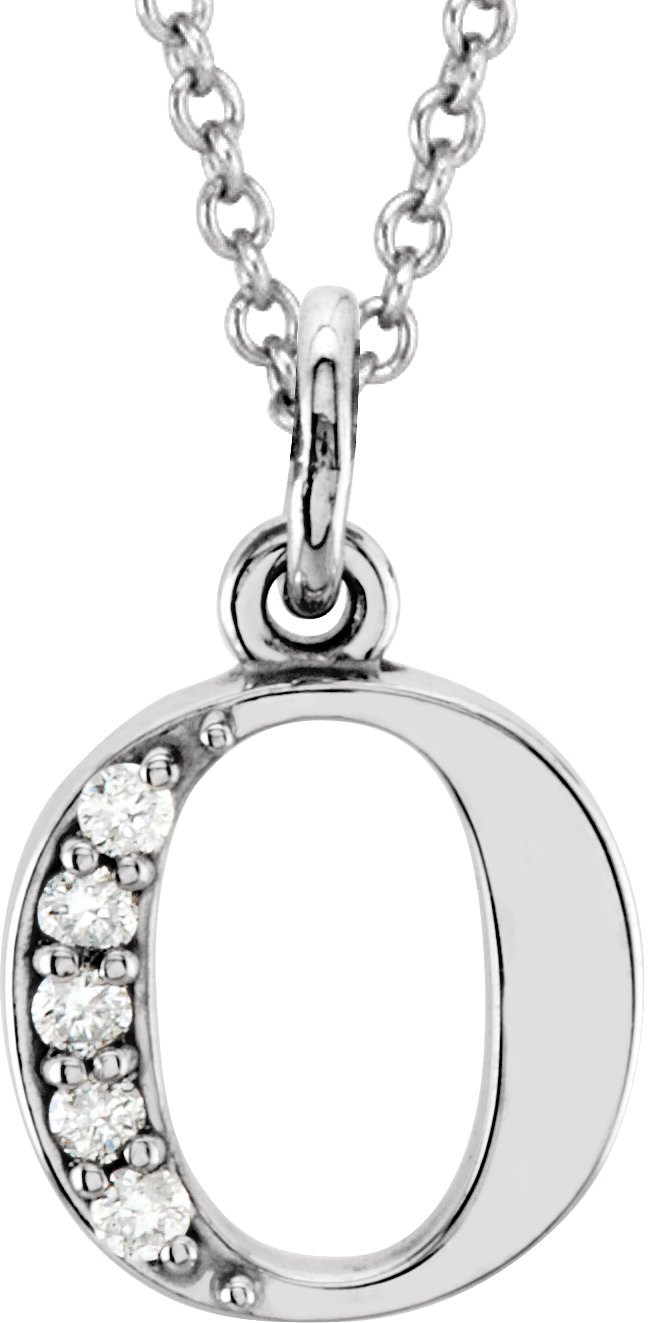 14K White .02 CTW Natural Diamond Lowercase Initial O 16" Necklace