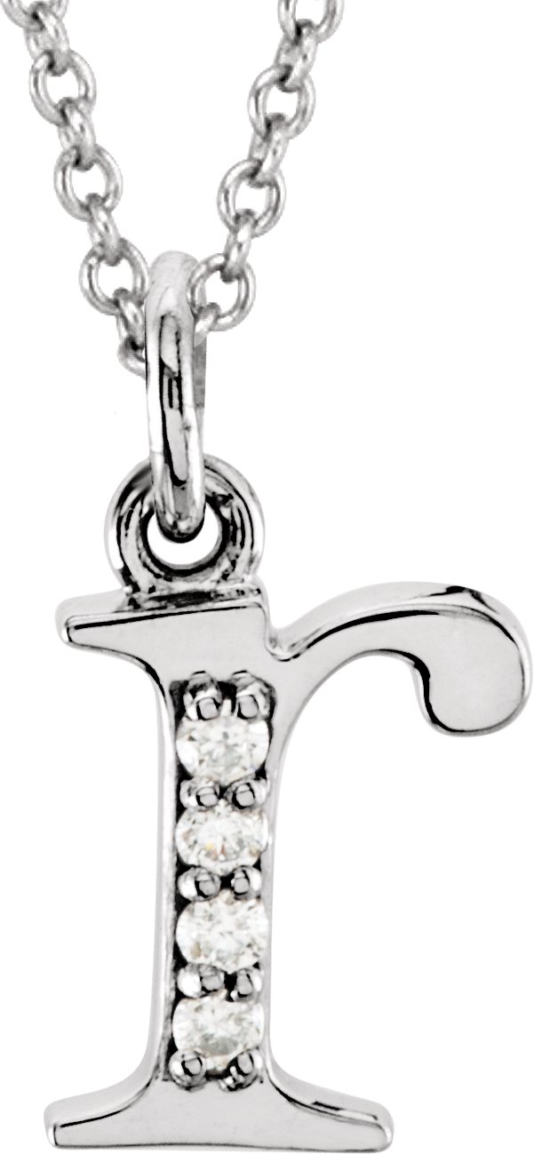 14K White .02 CTW Natural Diamond Lowercase Initial R 16" Necklace
