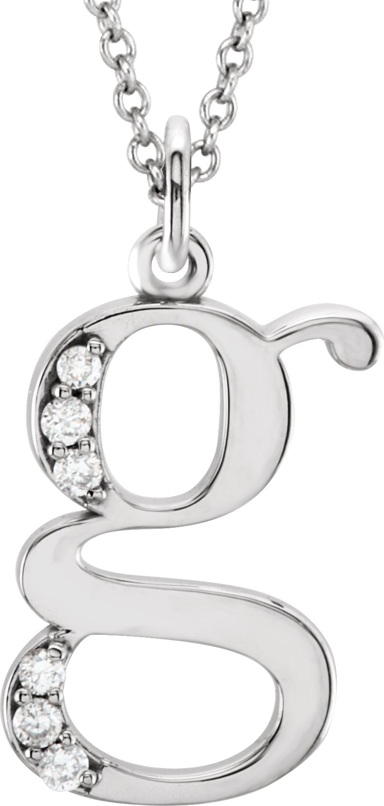 14K White .025 CTW Natural Diamond Lowercase Initial G 16" Necklace