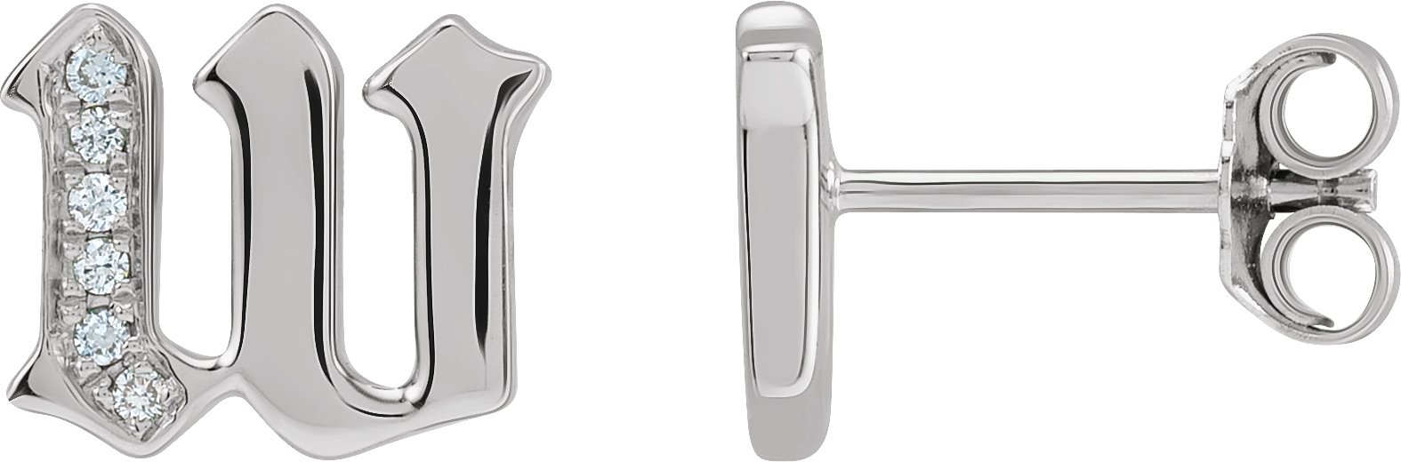 14K White .03 CTW Diamond Single Gothic Initial W Earring Ref 18433501