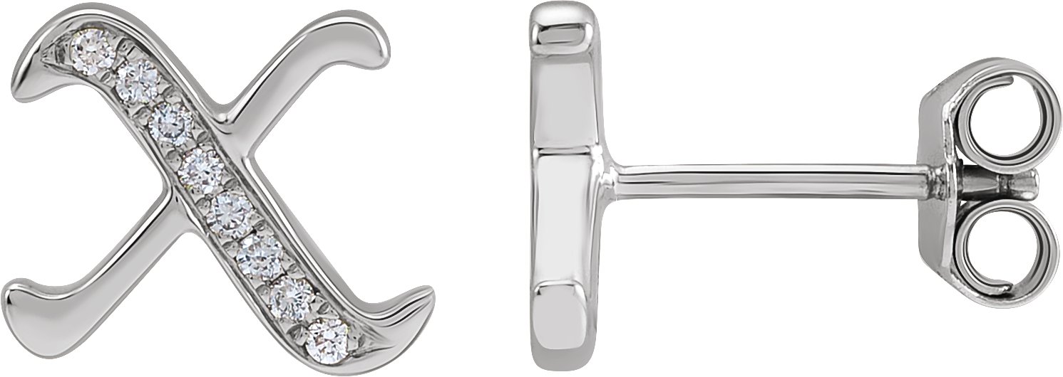 14K White .04 CTW Diamond Single Gothic Initial X Earring Ref 18433504