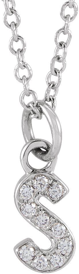 14K White .04 CTW Natural Diamond Petite Initial S 16 to 18 inch Necklace Ref 18053978