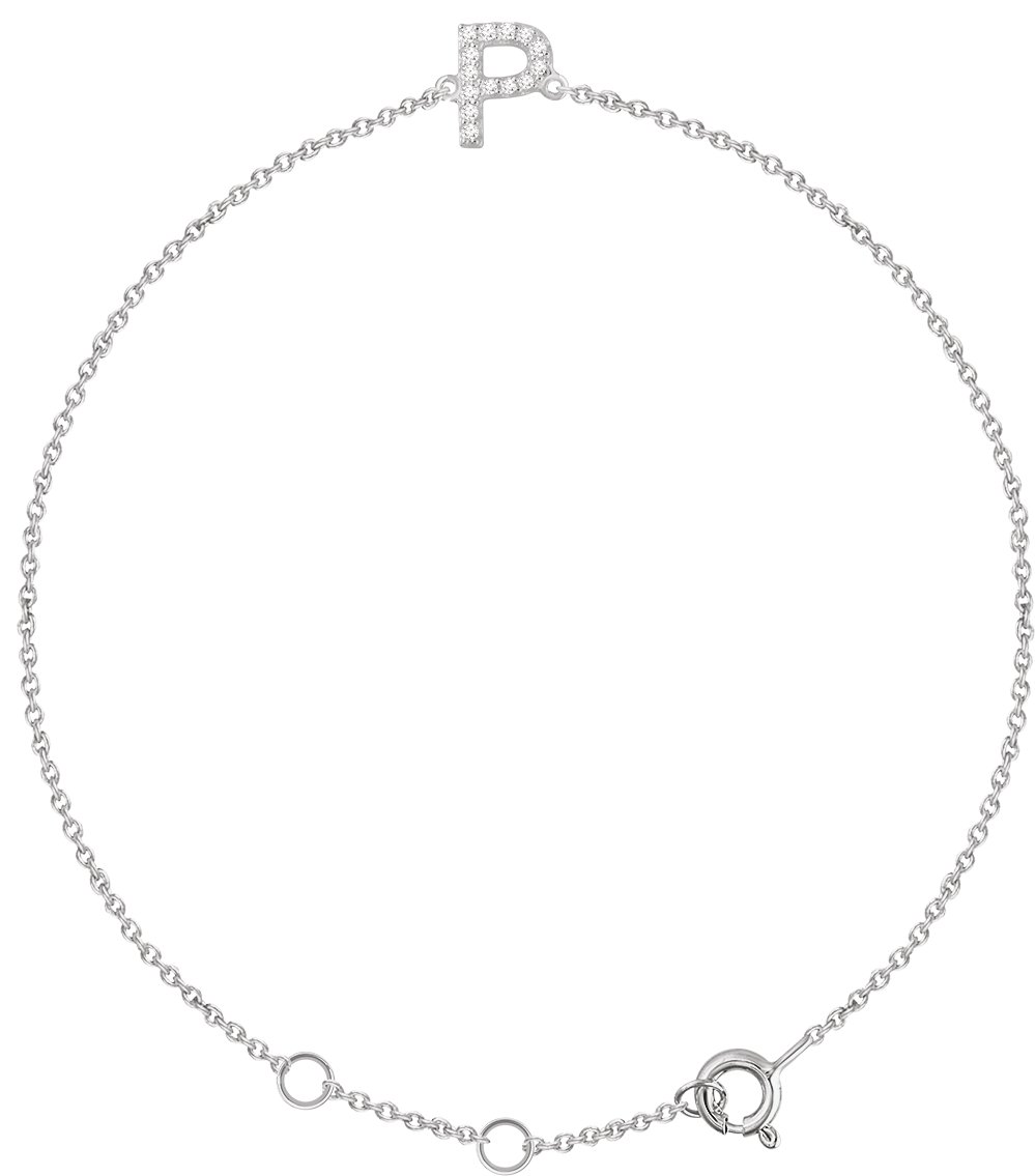 14K White .05 CTW Diamond Initial P 6-7" Bracelet