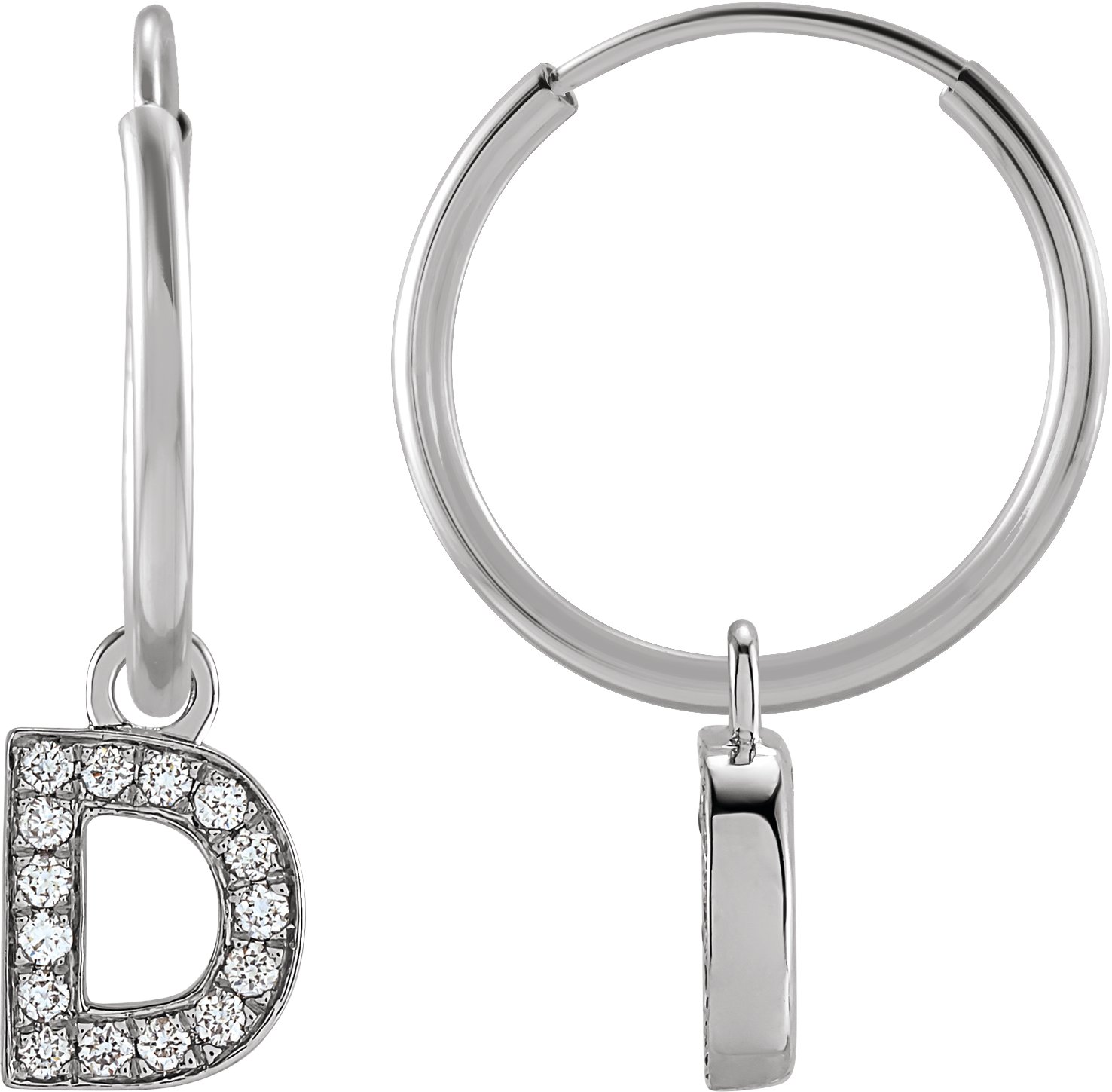 14K White .05 CTW Natural Diamond Single Initial D Hoop Earring Ref 18988674