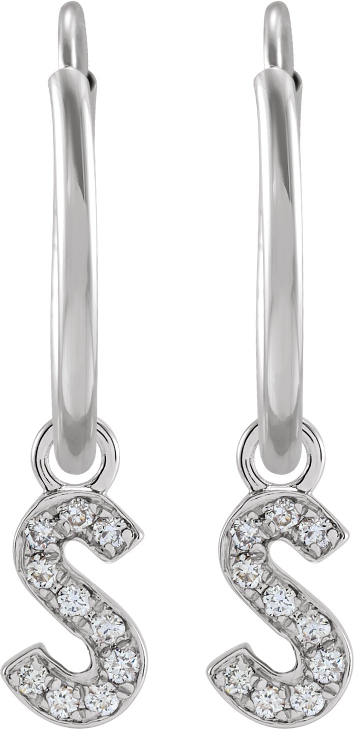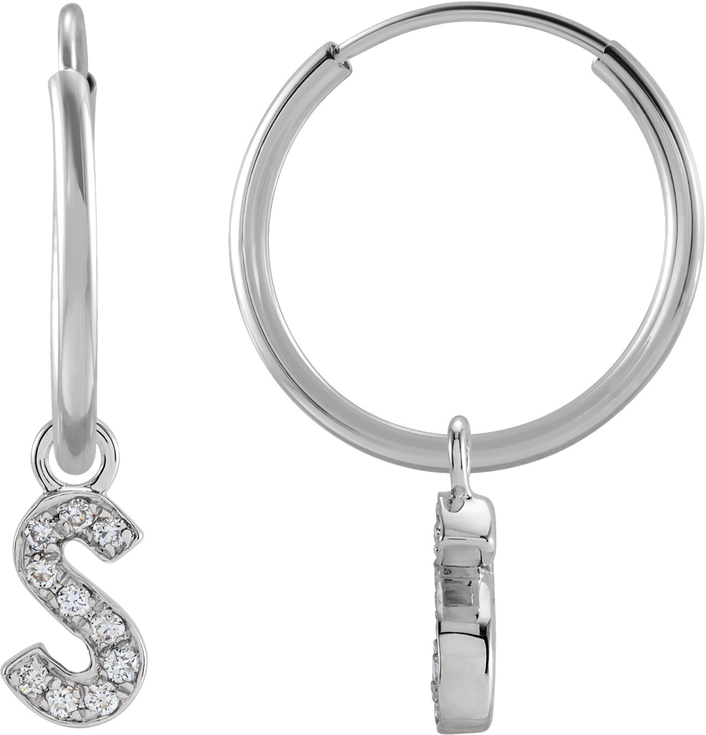 14K White .05 CTW Natural Diamond Single Initial S Hoop Earring Ref 18988763