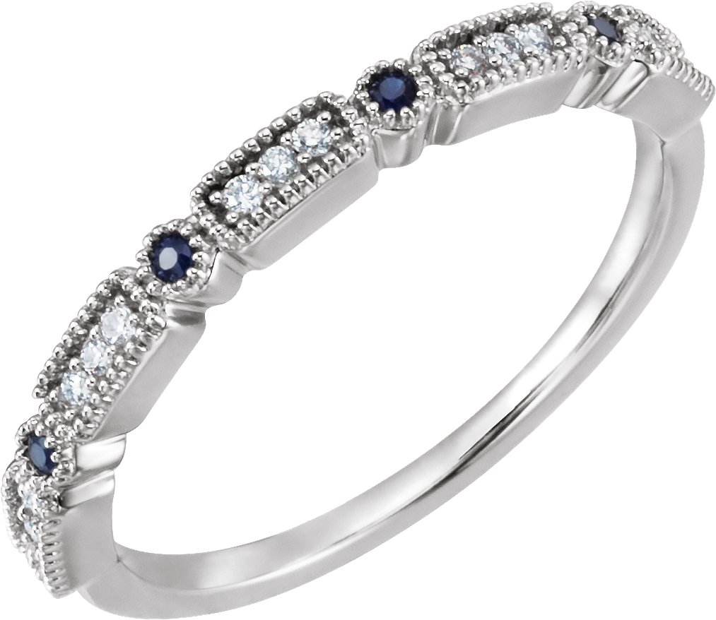 14K White .06 CTW Diamond and Sapphire Anniversary Band Ref 13189098