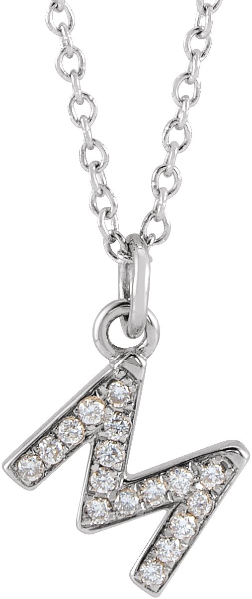14K White .06 CTW Natural Diamond Petite Initial M 16 to 18 inch Necklace Ref 18053960