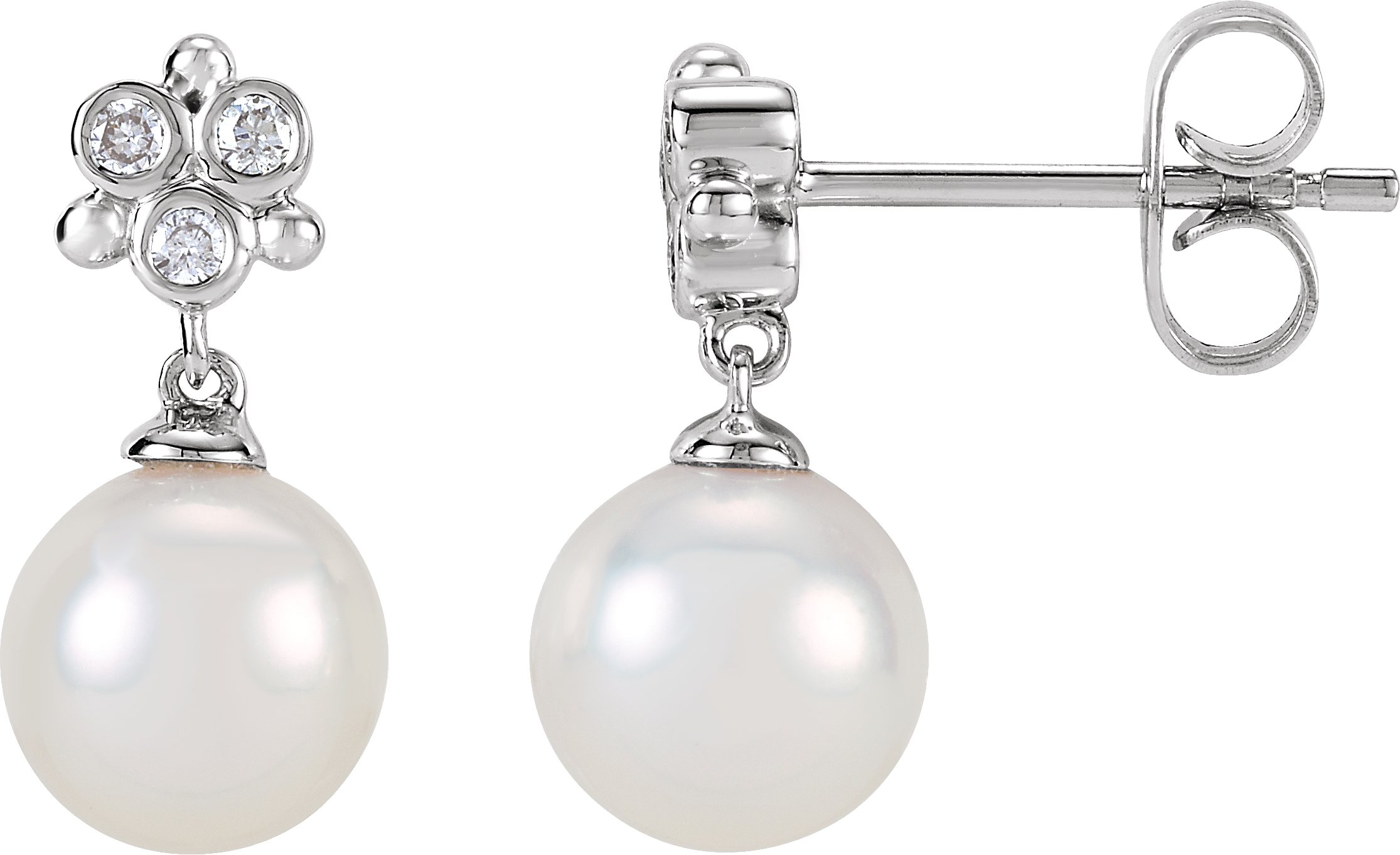 14K White .08 CTW Diamond and Freshwater Cultured Pearl Earrings