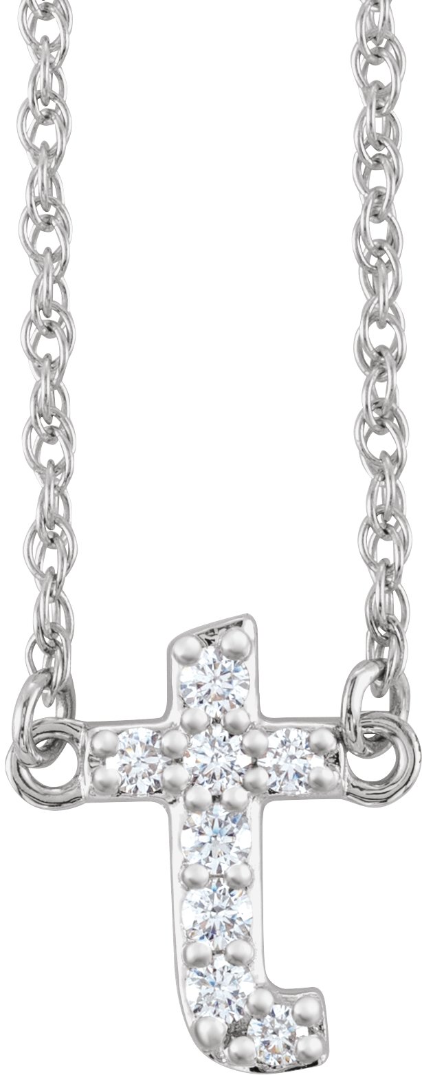 14K White .08 CTW Natural Diamond Lowercase Initial T 16" Necklace