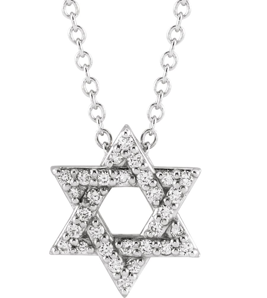 14K White 1/10 CTW Natural Diamond Star of David 16-18" Necklace