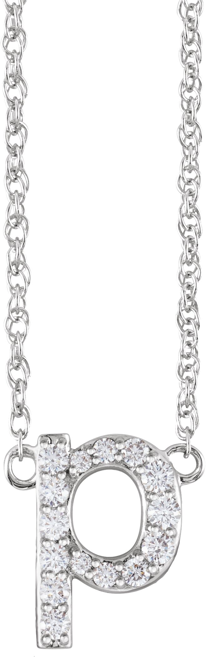 14K White 1/8 CTW Natural Diamond Lowercase Initial P 16" Necklace