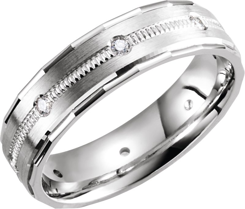 14K White .17 CTW Diamond Design Edge Band Size 13.5