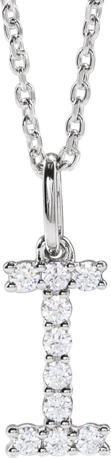 14K White 1/6 CTW Lab-Grown Diamond Initial I 16-18" Necklace