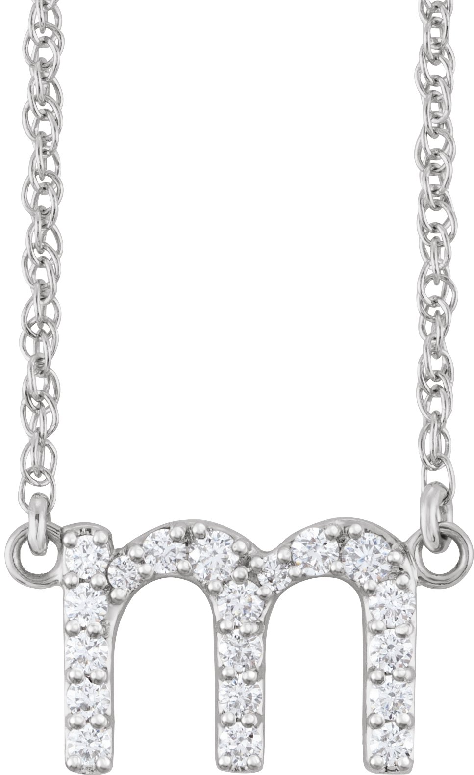 14K White 1/6 CTW Natural Diamond Lowercase Initial M 16" Necklace