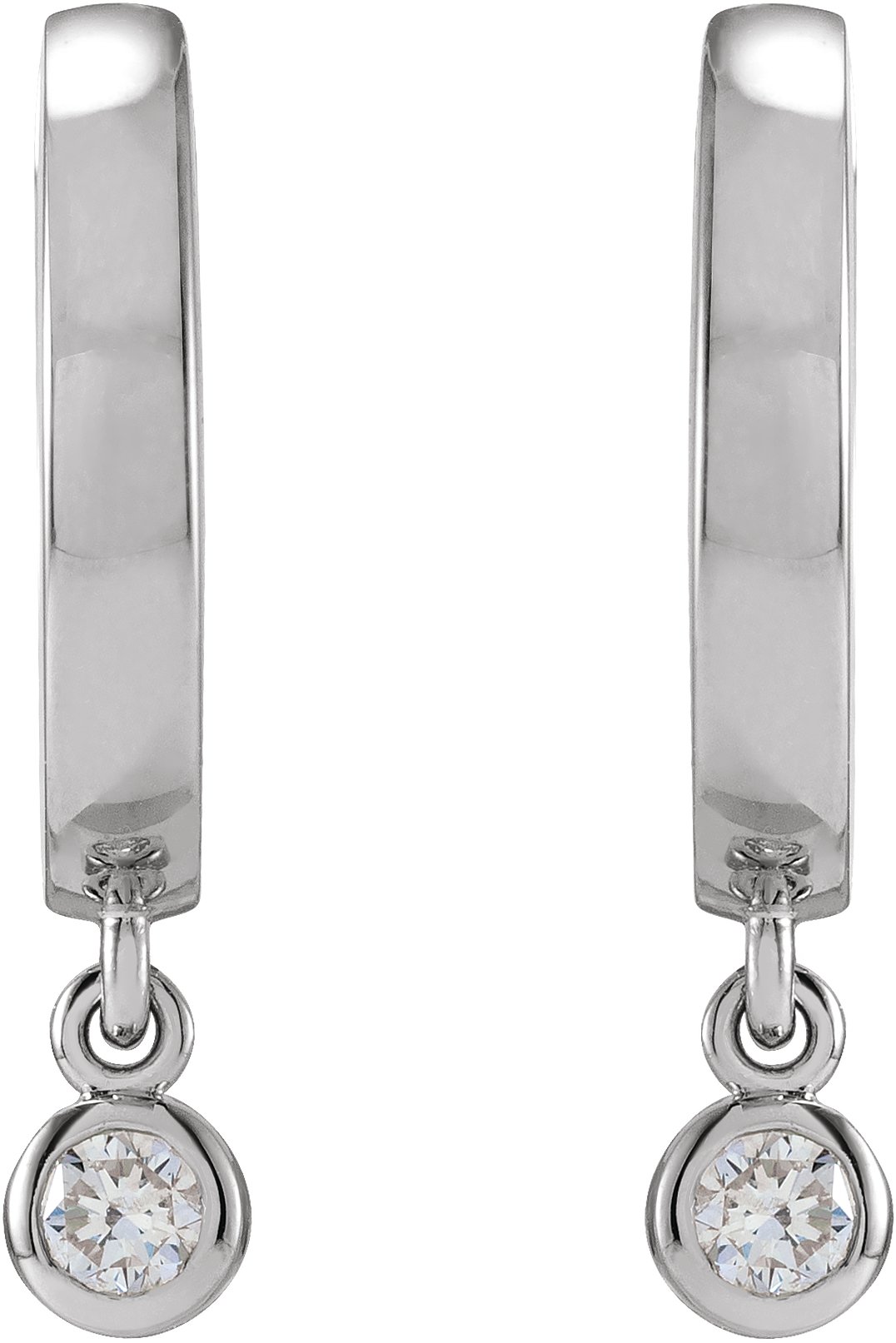 Description: 1/5 CTW Diamond Bezel Dangle Hinged Hoop Earrings