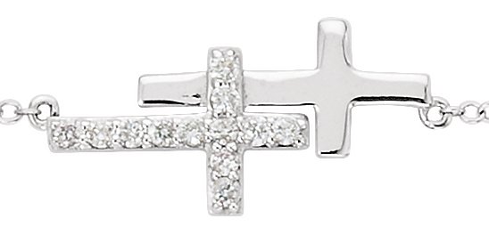 14K White 1/5 CTW Diamond Double Sideways Cross 8" Bracelet Ref. 7259809