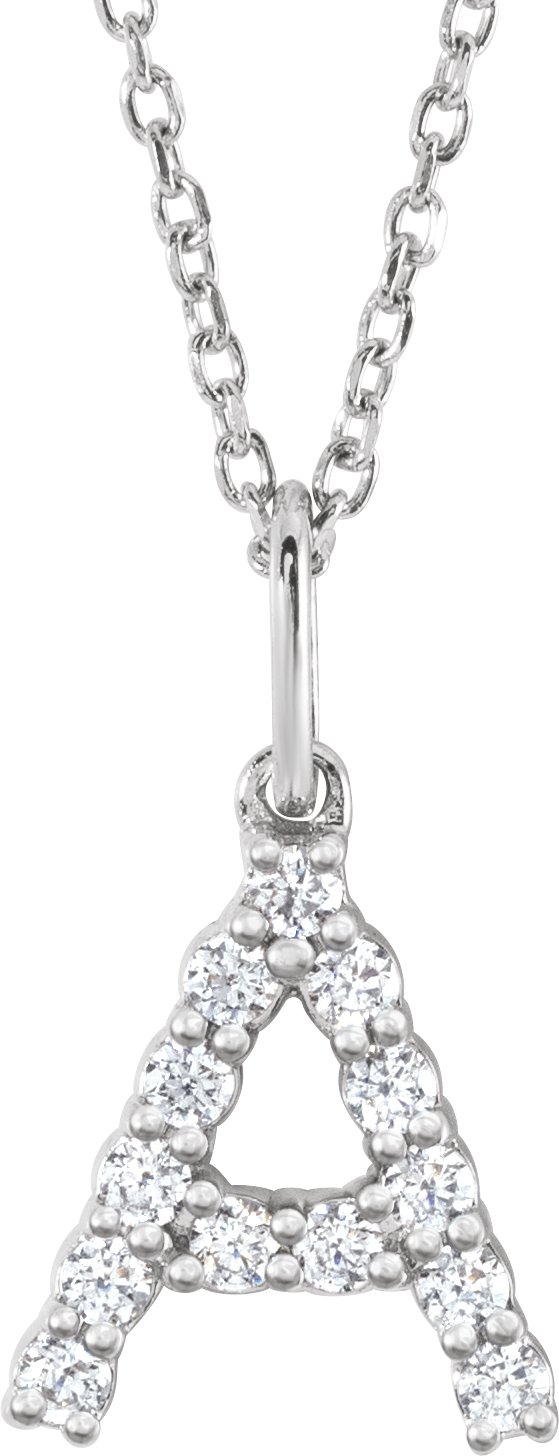 14K White 1/5 CTW Lab-Grown Diamond Initial A 16-18" Necklace