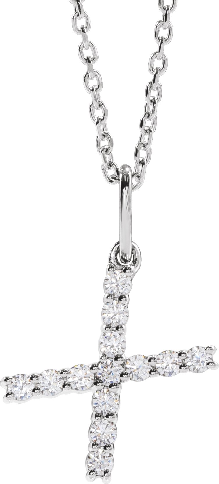 14K White 1/5 CTW Lab-Grown Diamond Initial X 16-18" Necklace
