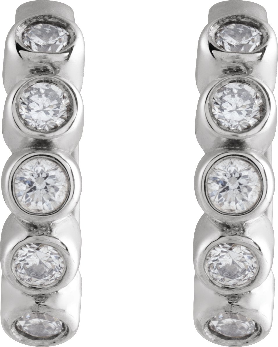 Description: 1/5 CTW Natural Diamond Bezel-Set Hinged Hoop Earrings