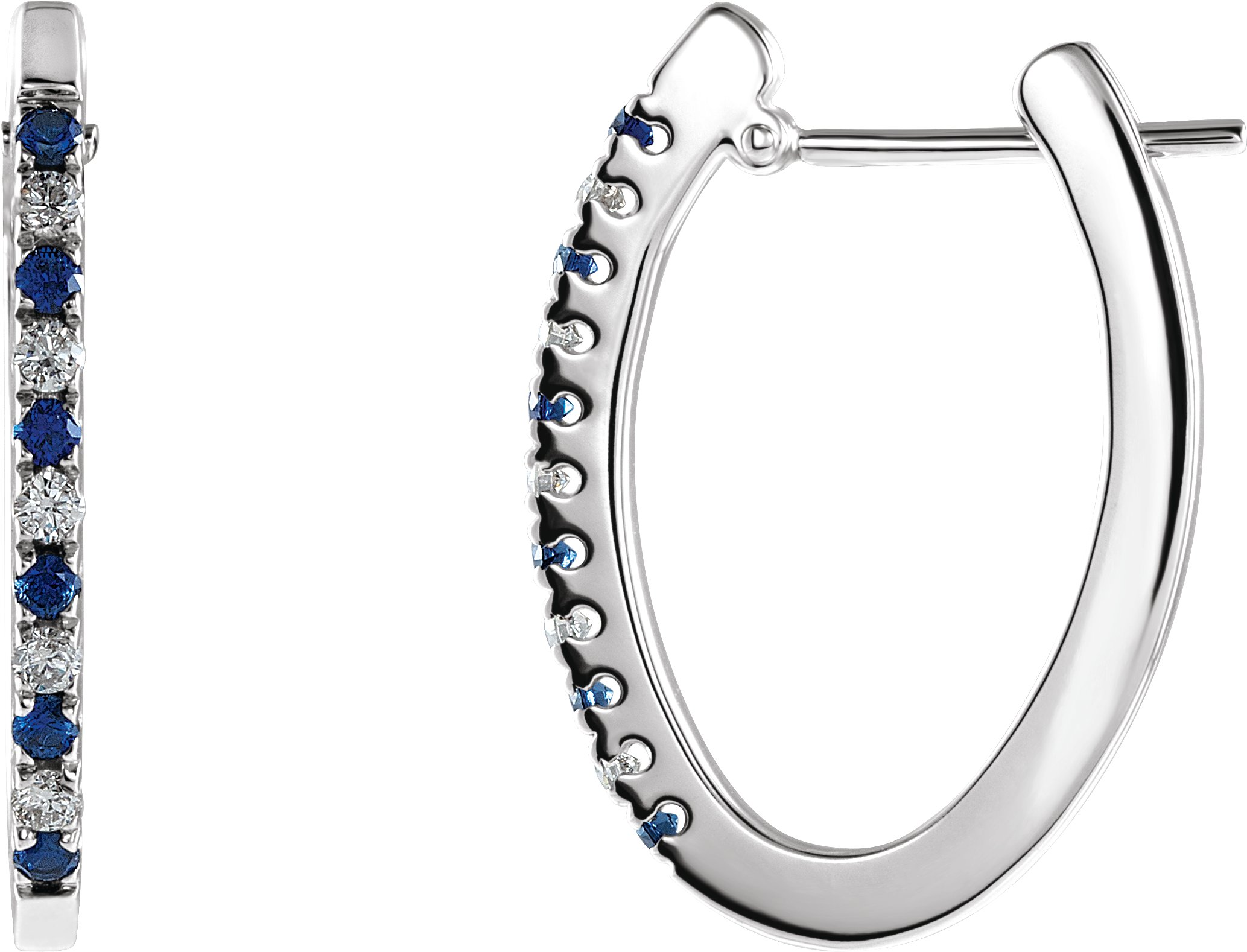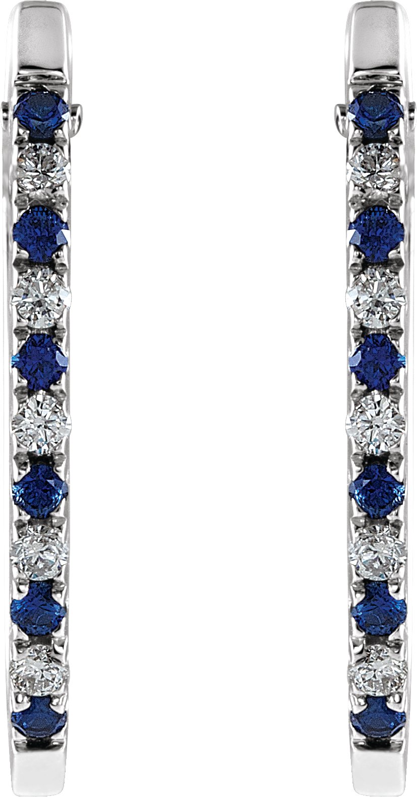 14K White .20 CTW Sapphire and Diamond Hoop Earrings