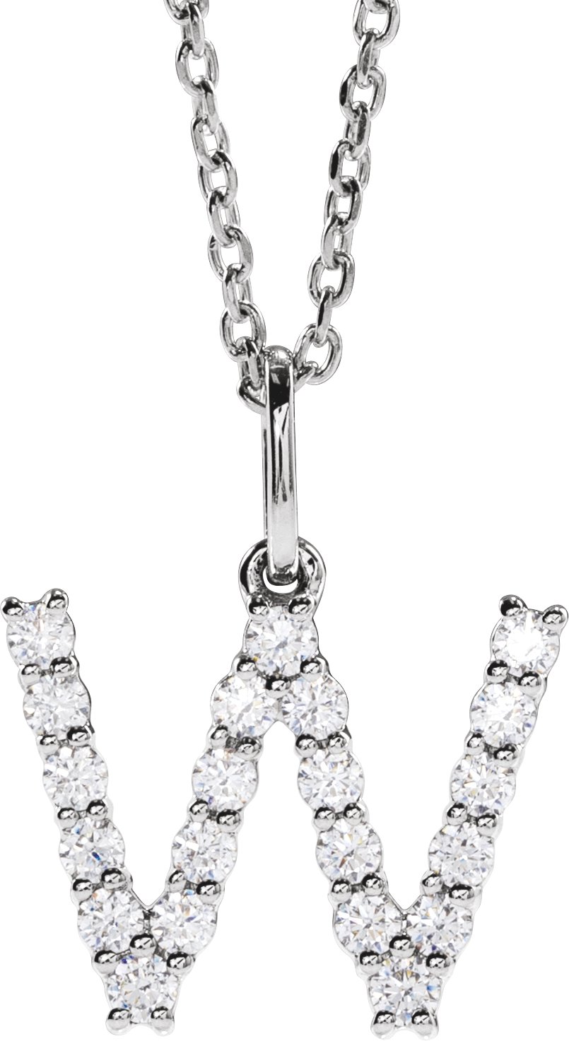 14K White 1/3 CTW Lab-Grown Diamond Initial W 16-18" Necklace