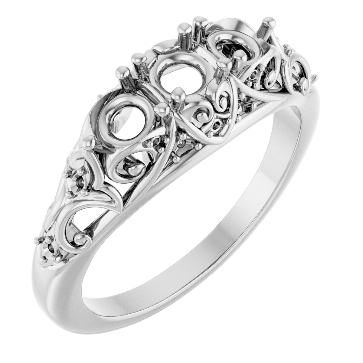 14K White 7/8 CTW Diamond Vintage-Inspired Three-Stone Anniversary Band