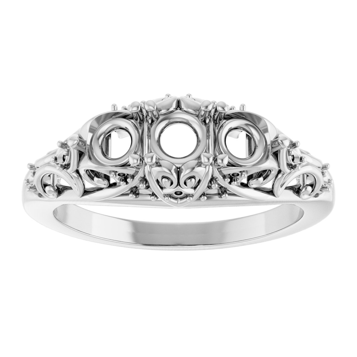 14K White 1 CTW Diamond Vintage-Inspired Three-Stone Anniversary Band