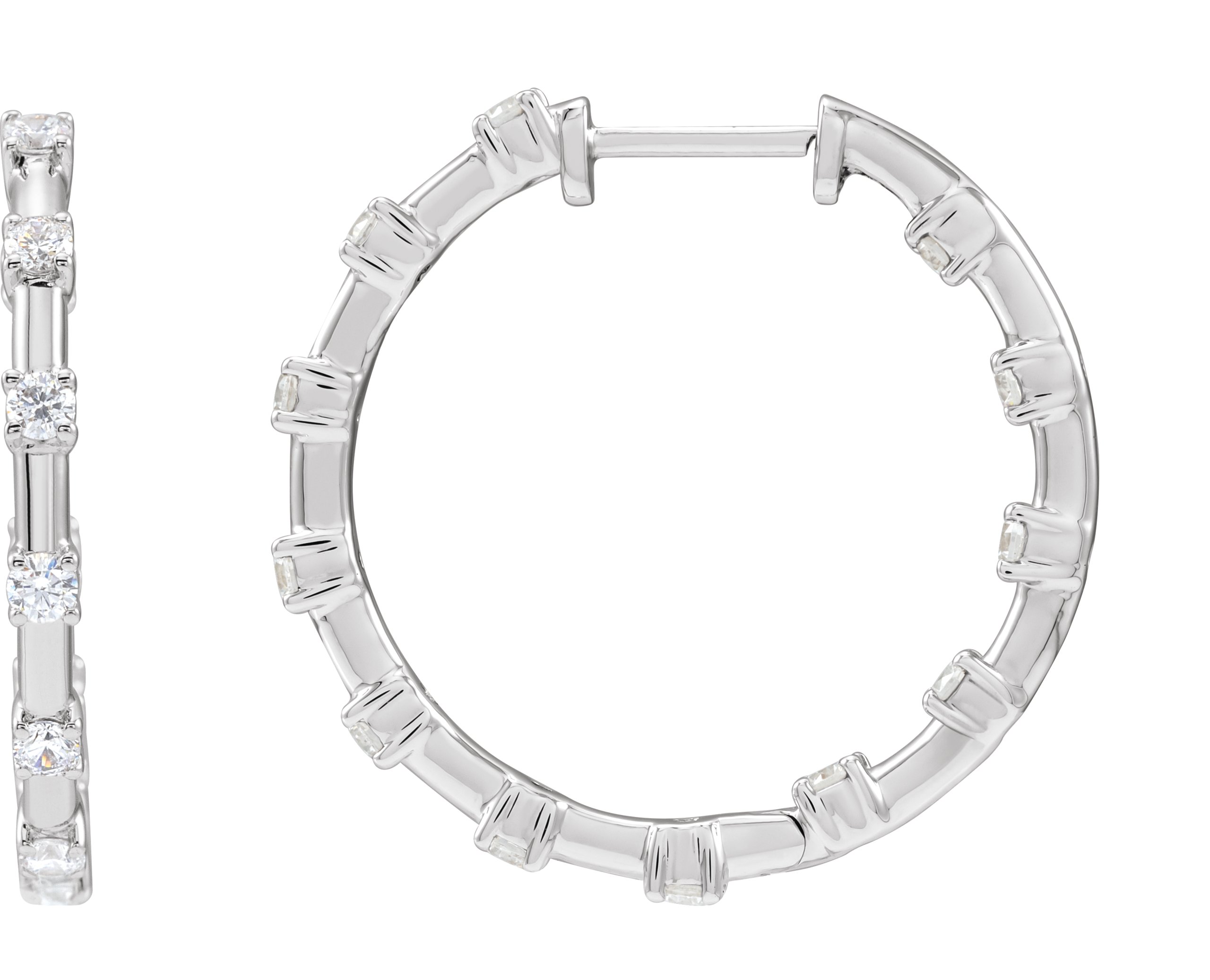 14K White 1 CTW Lab Grown Diamond Inside Outside Hoop Earrings Ref 19716184