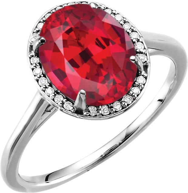 14K White 10x8 mm Oval Chatham Lab Created Ruby & .06 CTW Diamond Ring