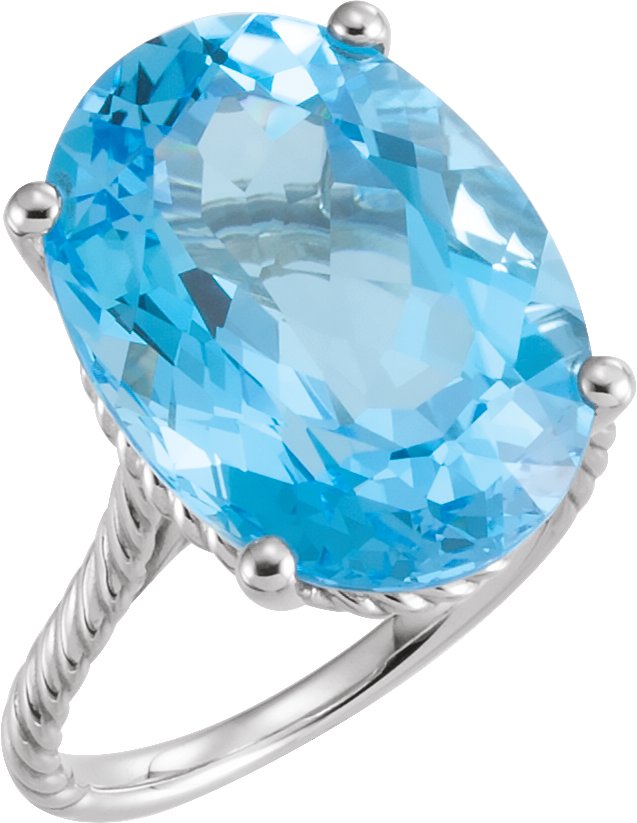 14K White 18x13 mm Swiss Blue Topaz Rope Ring