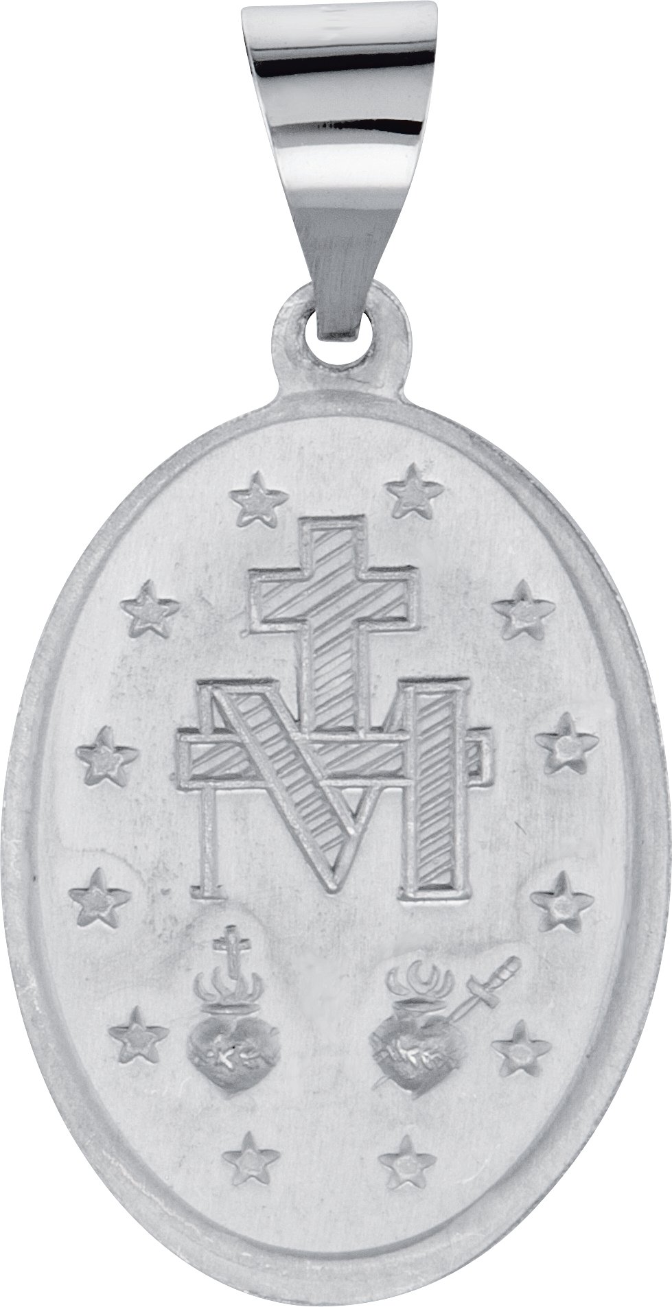 14K White 19x13.5 mm Oval Hollow Miraculous Medal