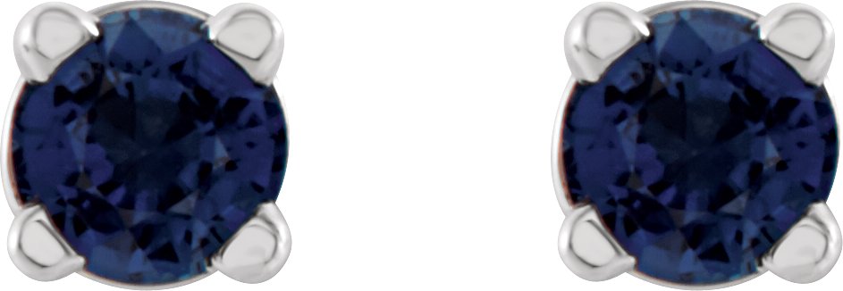 14K White 2.5 mm Round Chatham Created Blue Sapphire Earrings
