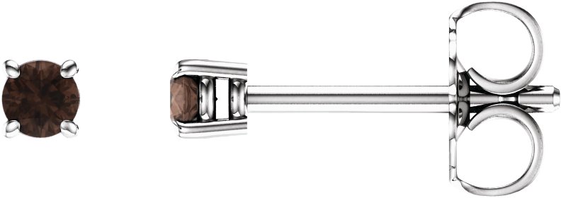 14K White 2.5 mm Round Smoky Quartz Earrings