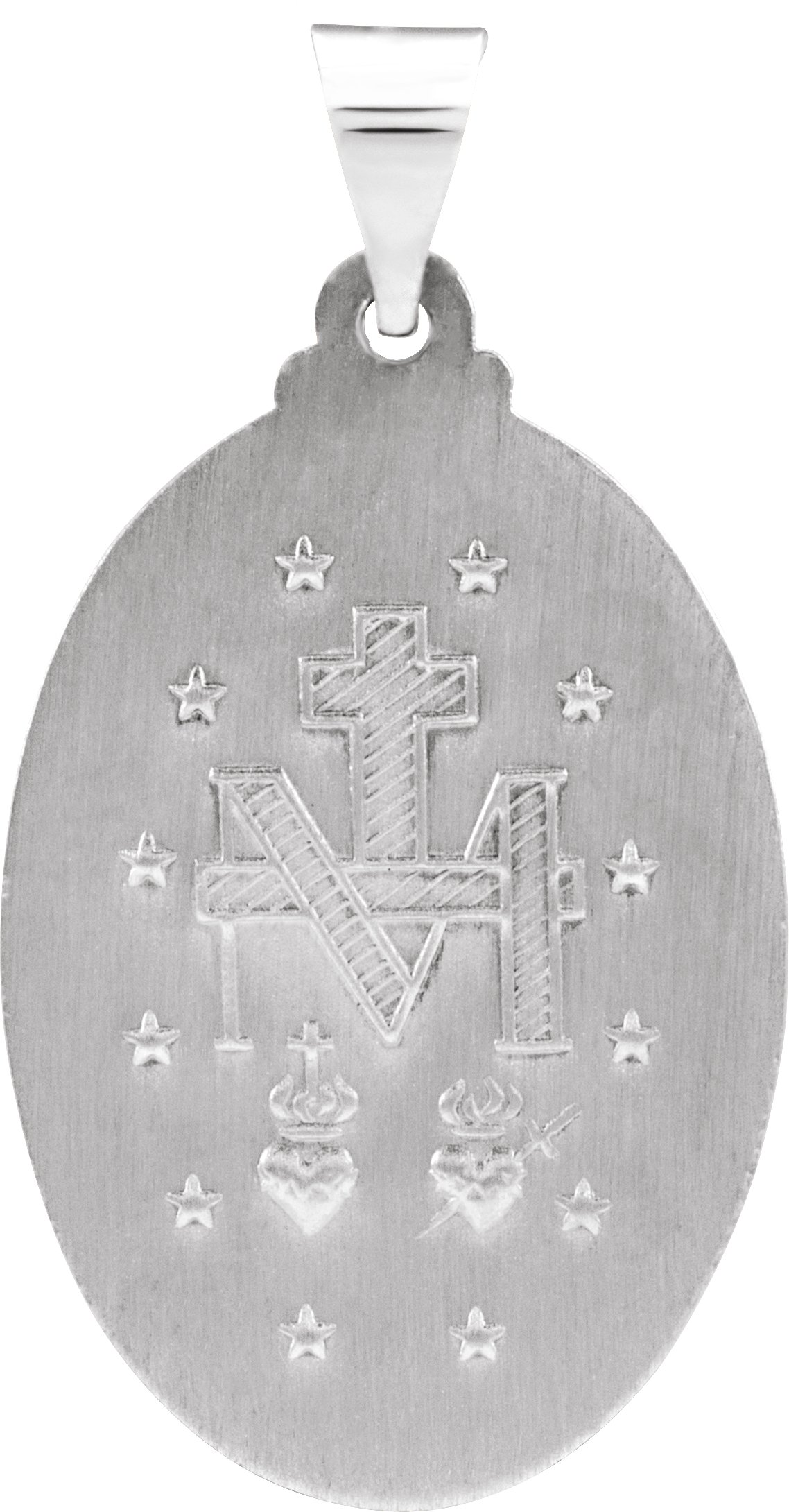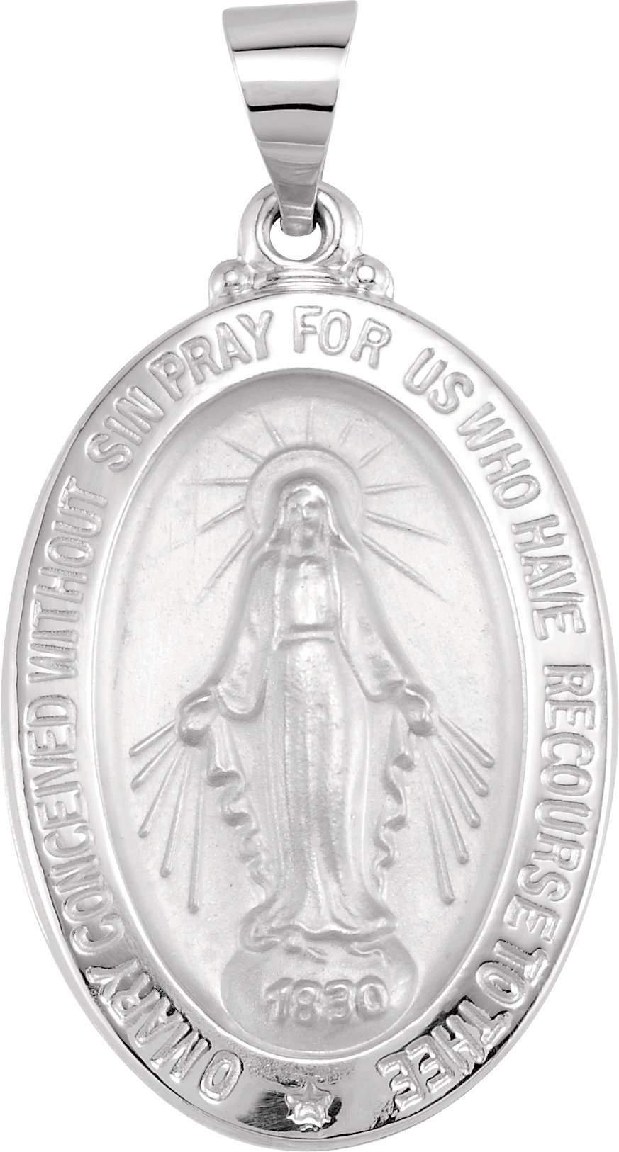 14K White 25x18 mm Oval Hollow Miraculous Medal