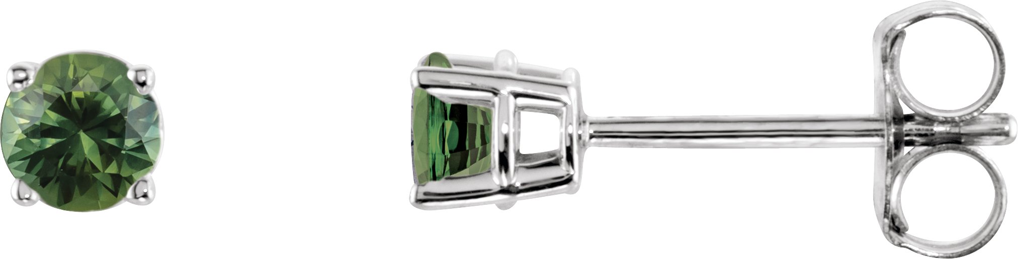 14K White 3 mm Natural Green Sapphire Stud Earrings with Friction Post Ref 18406534