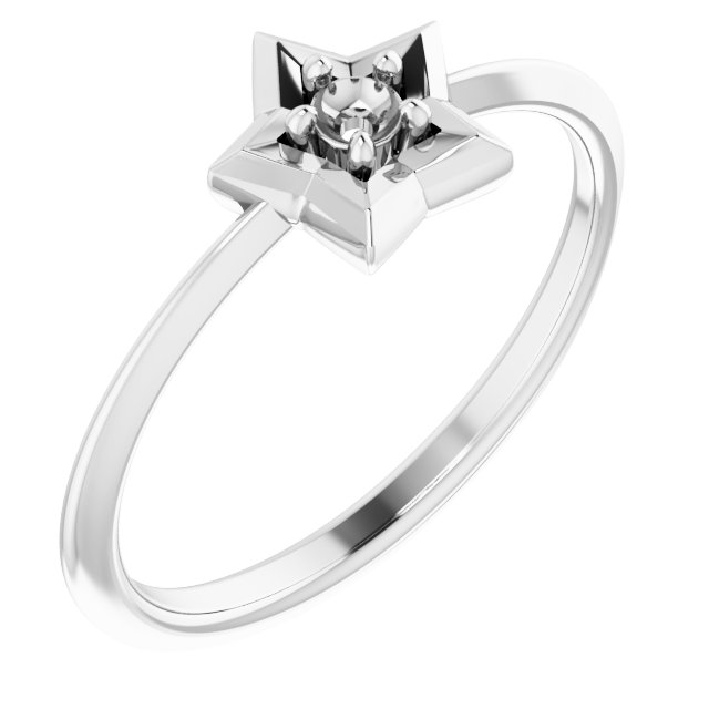 14K White 3 mm Round April Youth Star Birthstone Ring