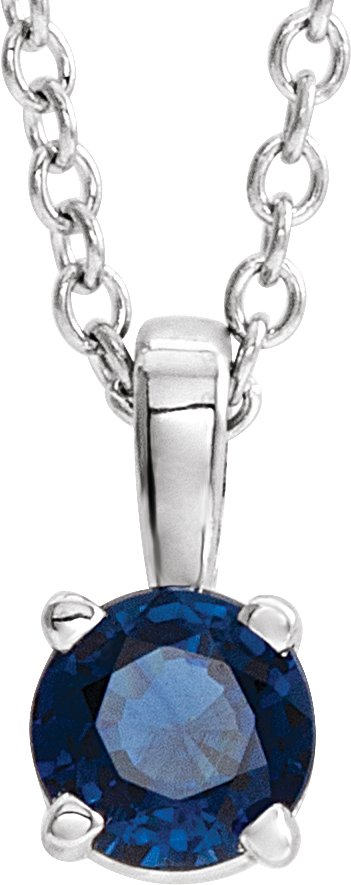 14K White 3 mm Round Chatham Lab Created Blue Sapphire Birthstone Pendant