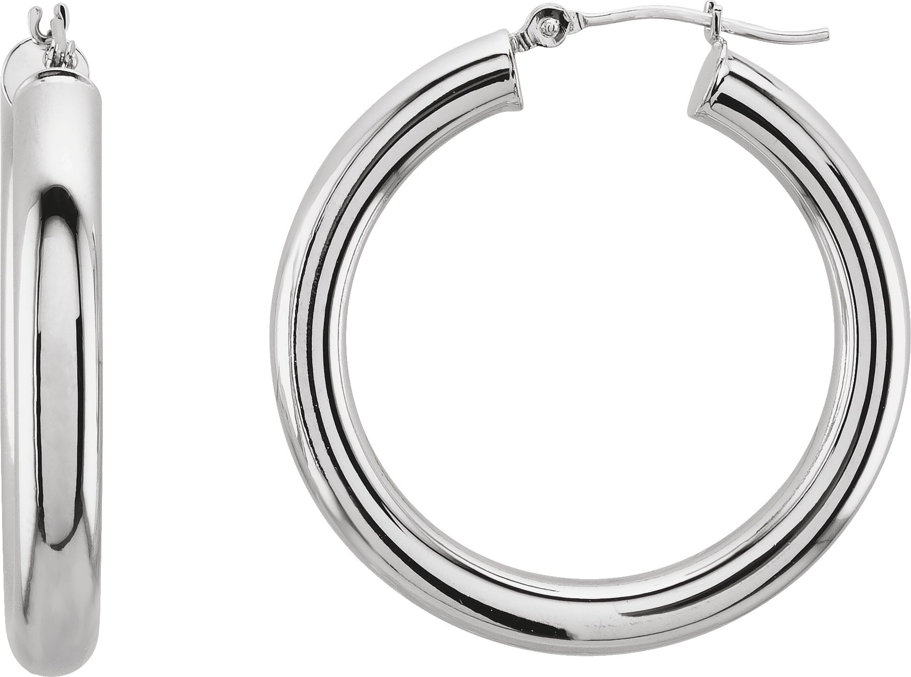 14K White 30 mm Tube Hoop Earrings Ref 20398084