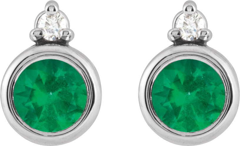 14K White 4 mm Lab-Grown Emerald & .03 CTW Natural Diamond Earrings