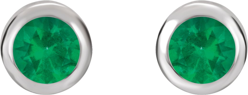 14K White 4 mm Round Chatham Created Emerald Birthstone Earrings