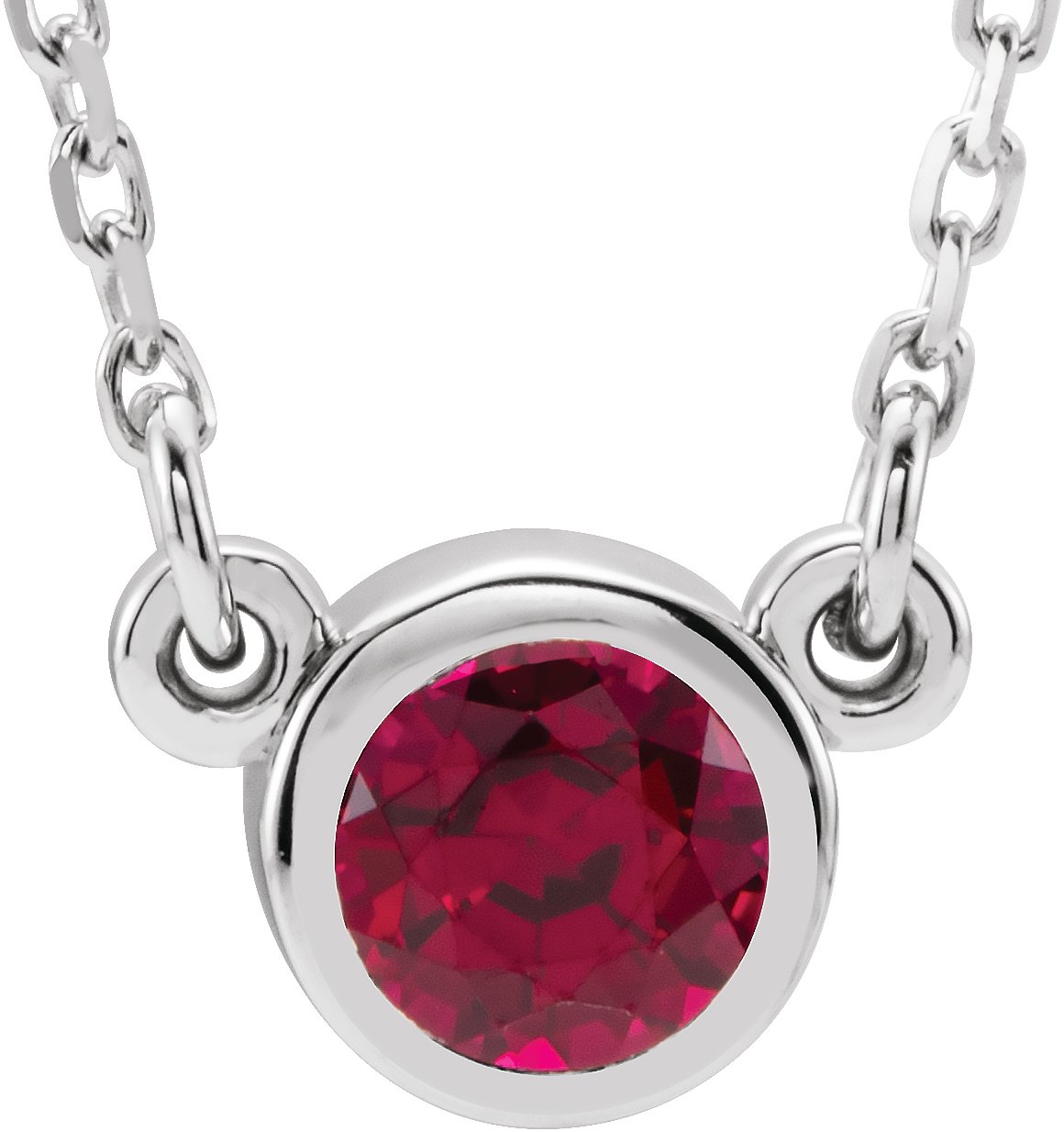 14K White 4 mm Round Chatham Lab Created Ruby Bezel Set Solitaire 16" Necklace Ref. 11848669