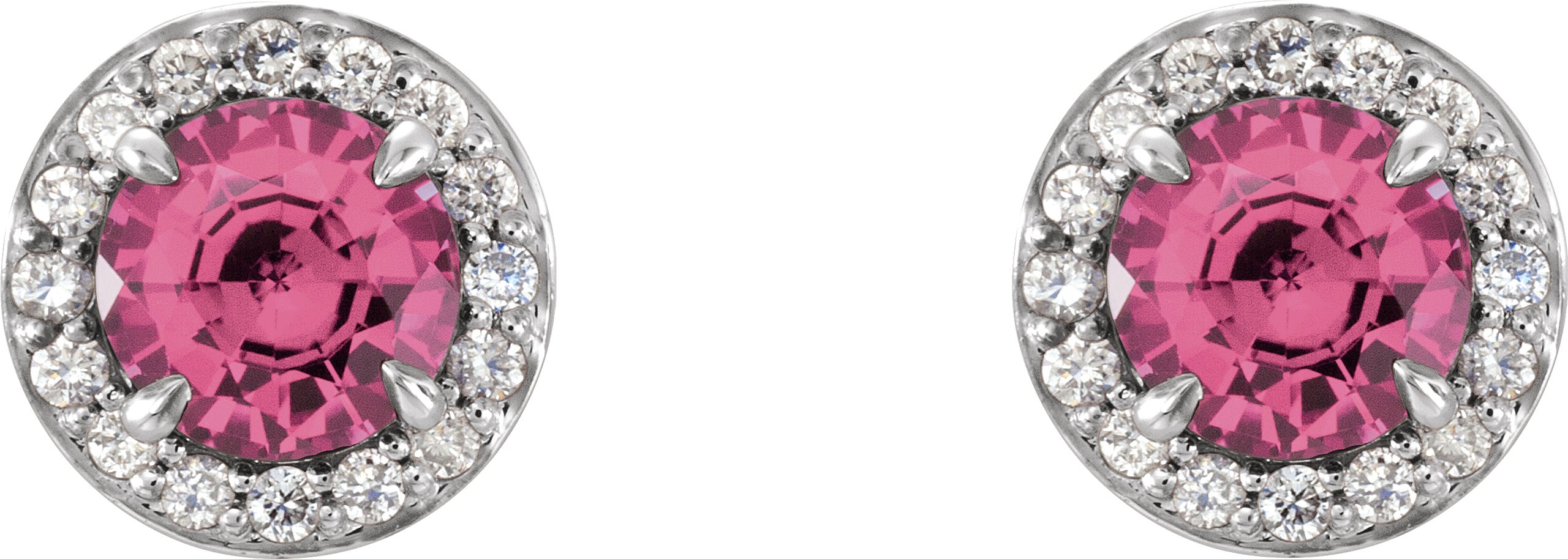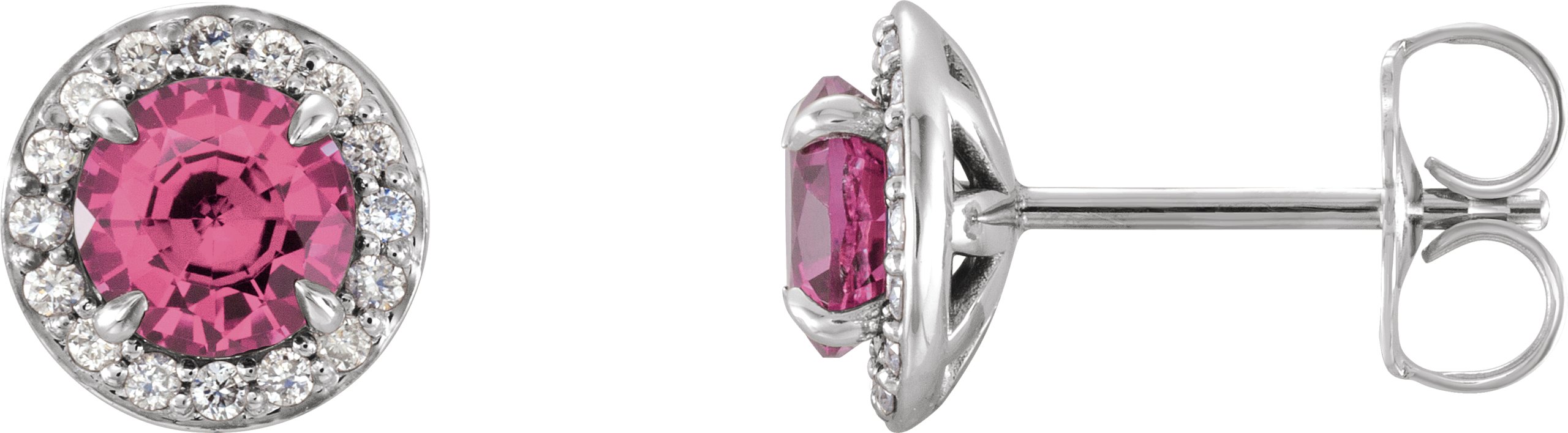 Description: Genuine Pink Tourmaline And 1/8 Ctw Diamond Halo-Style Earrings